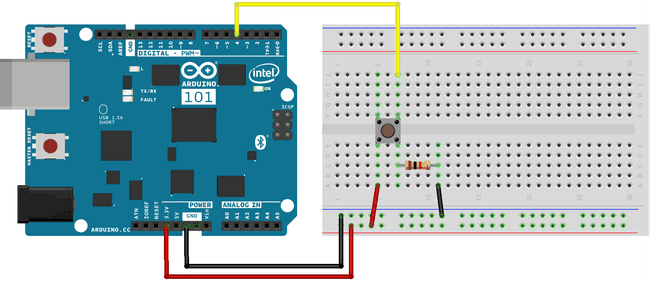 With this tutorial you learn to use the Curie Bluetooth® Low Energy library to connect your board with a smartphone or tablet. A pushbutton connected to the board allows you to turn on and off the onboard LED on Pin 13. The same action can be performed from the smartphone and the smartphone is capable of reading the LED status. This bidirectional communication happens between the Bluetooth® Low Energy central (smartphone) and the peripheral (our 101 board).